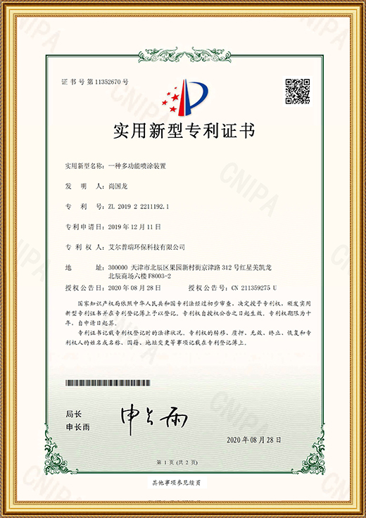 實(shí)用新型專利證書(shū)(一種多功能噴涂裝置)